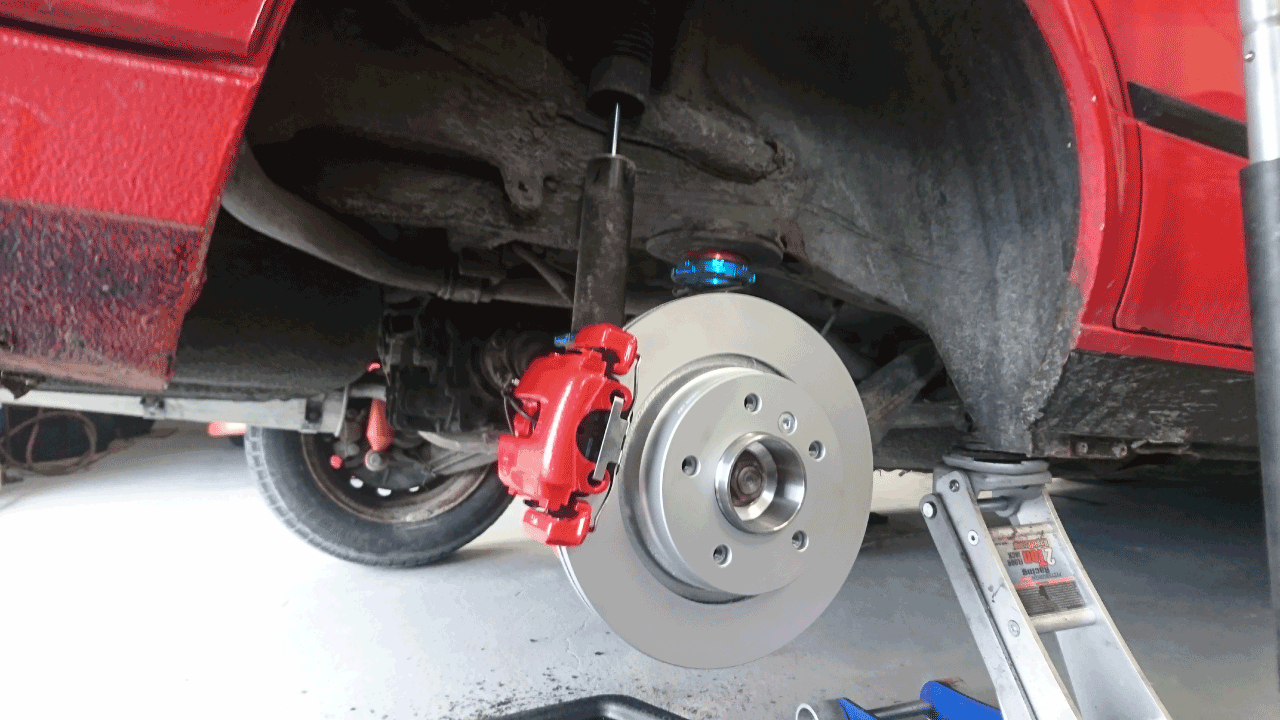 Now time to install the new rotors, calipers, pads, hoses and brake pad sensors ( optional, if you keep it ). Bleed the calipers properly and you’re ready to install the wheels.